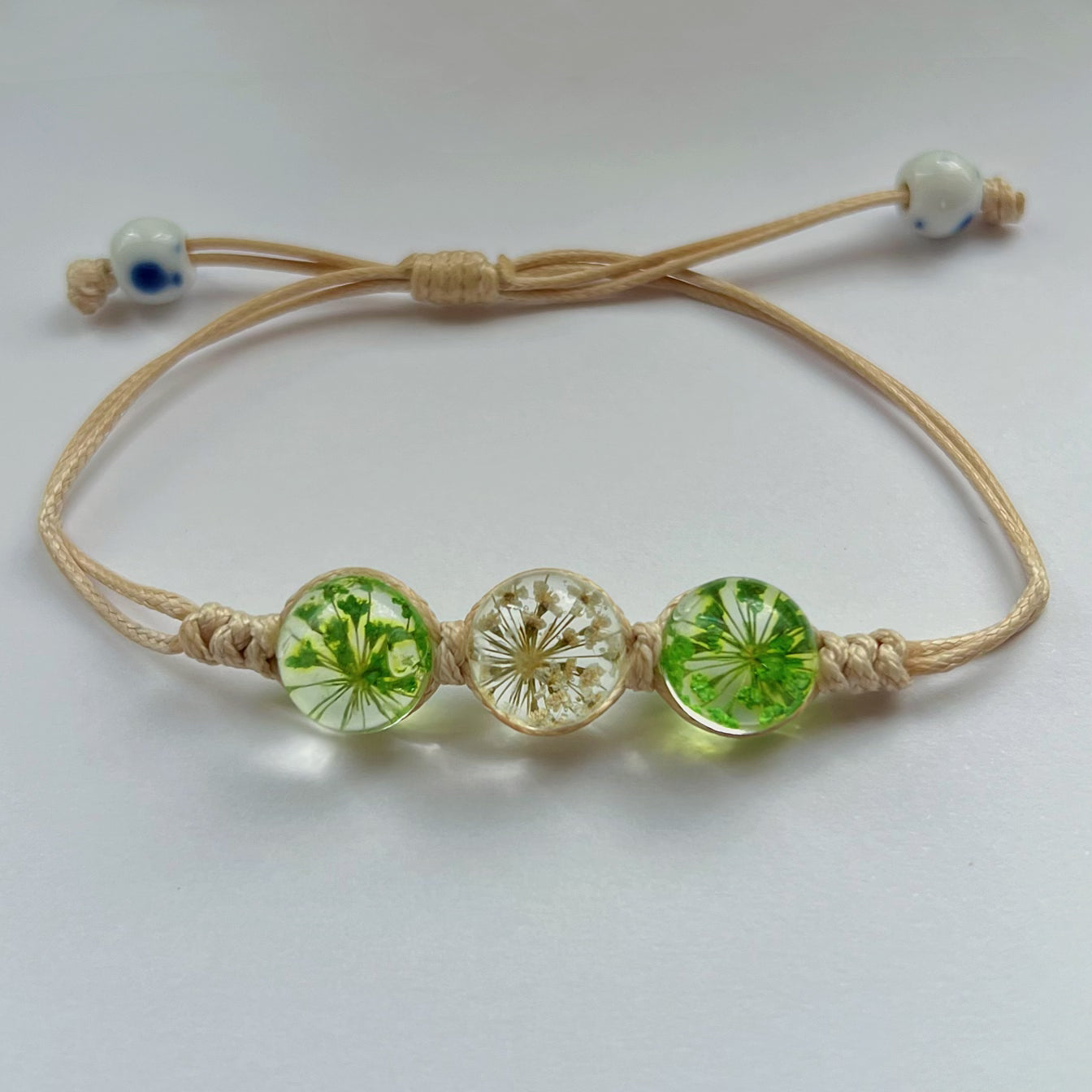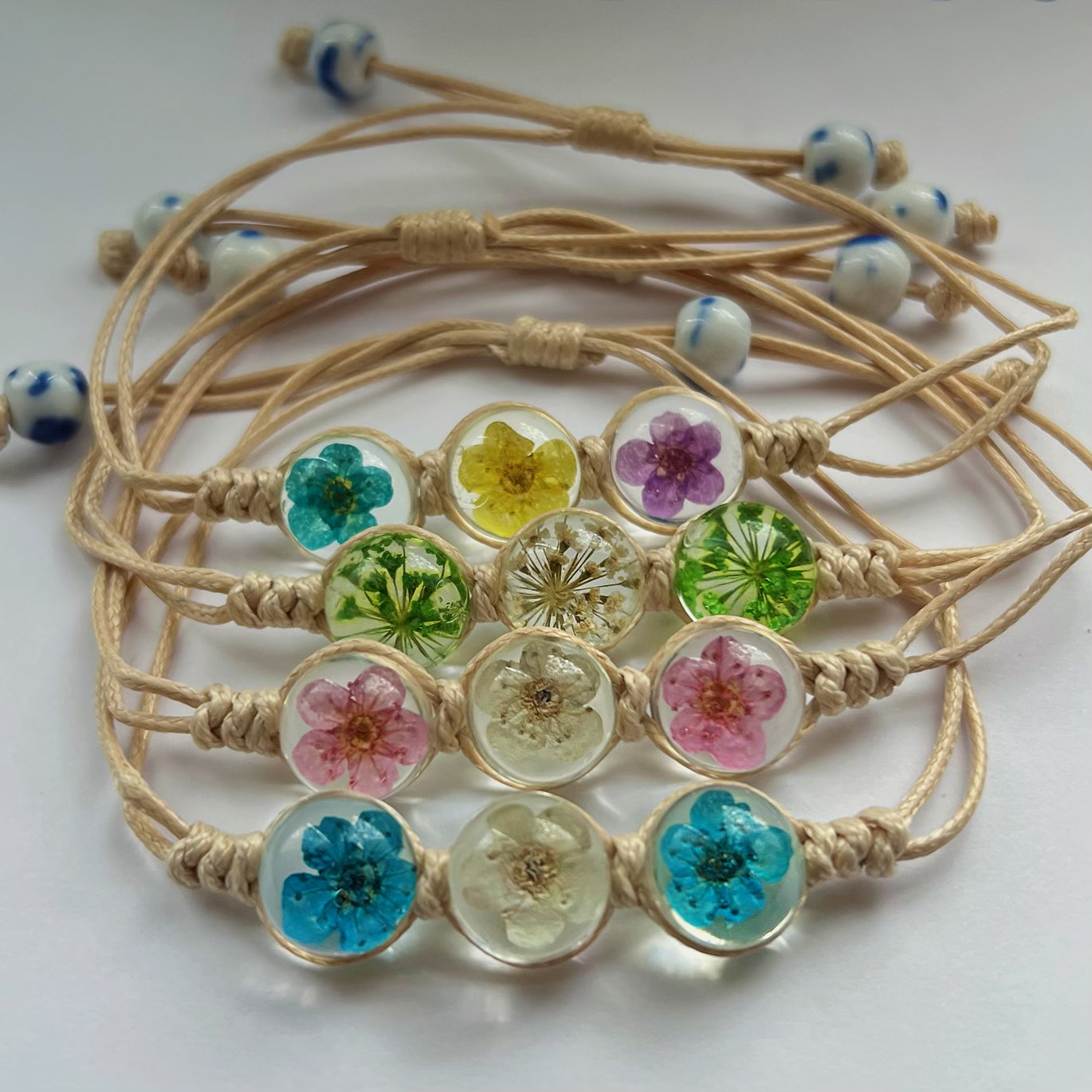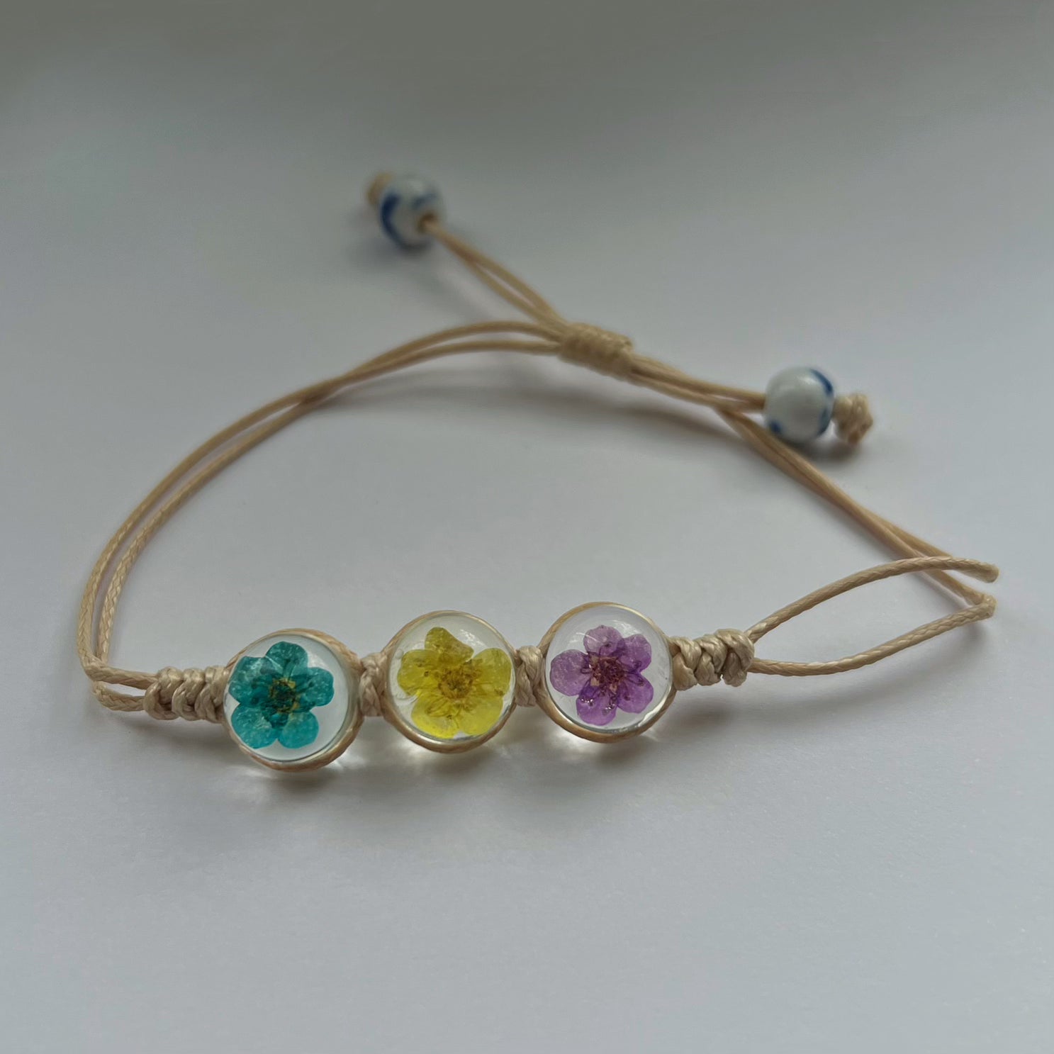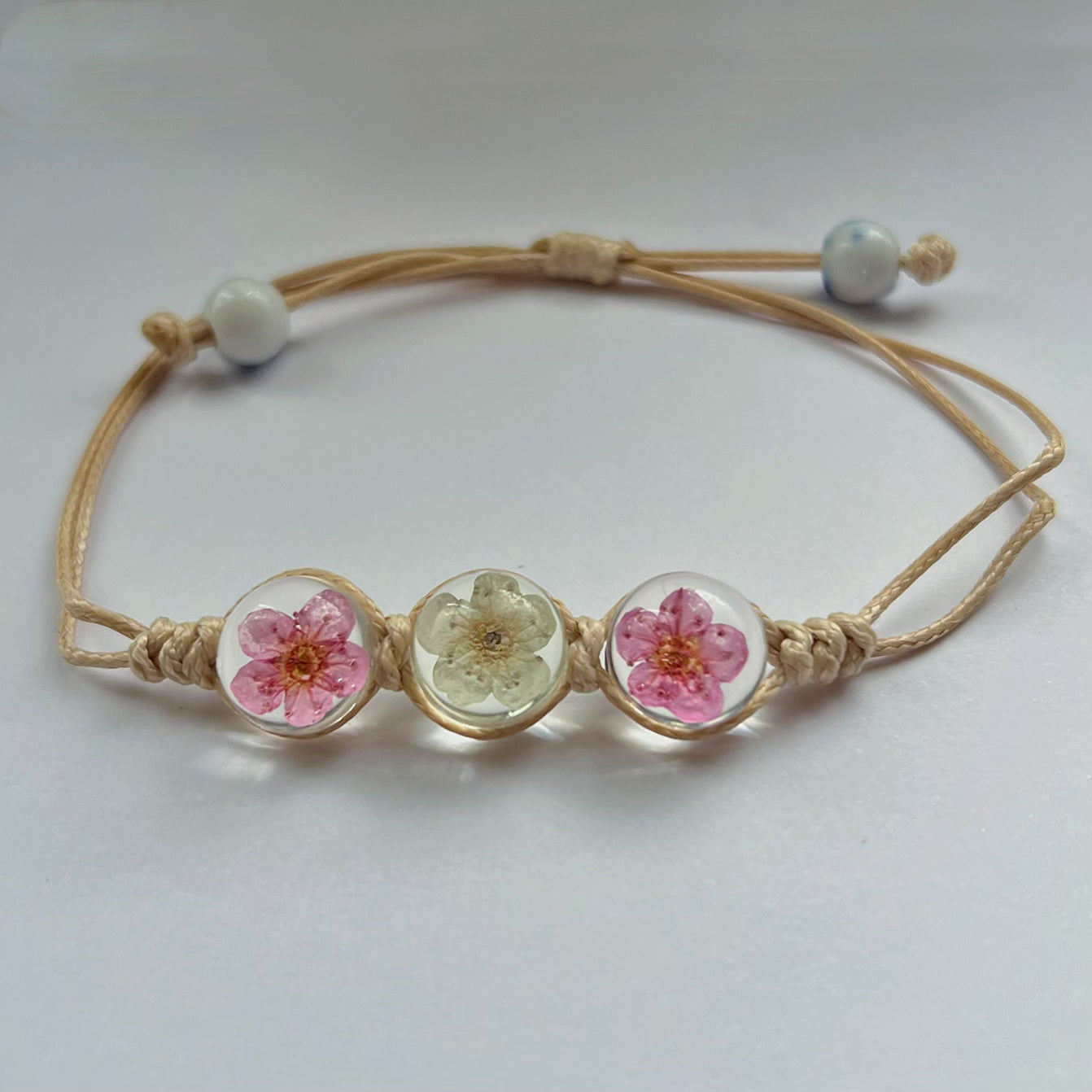 3 vraies fleurs sont mises dans ces bracelets réglables. Ils iront à tout les poignets et ne pourront que vous rendre plus belle que vous ne l'êtes déjà !