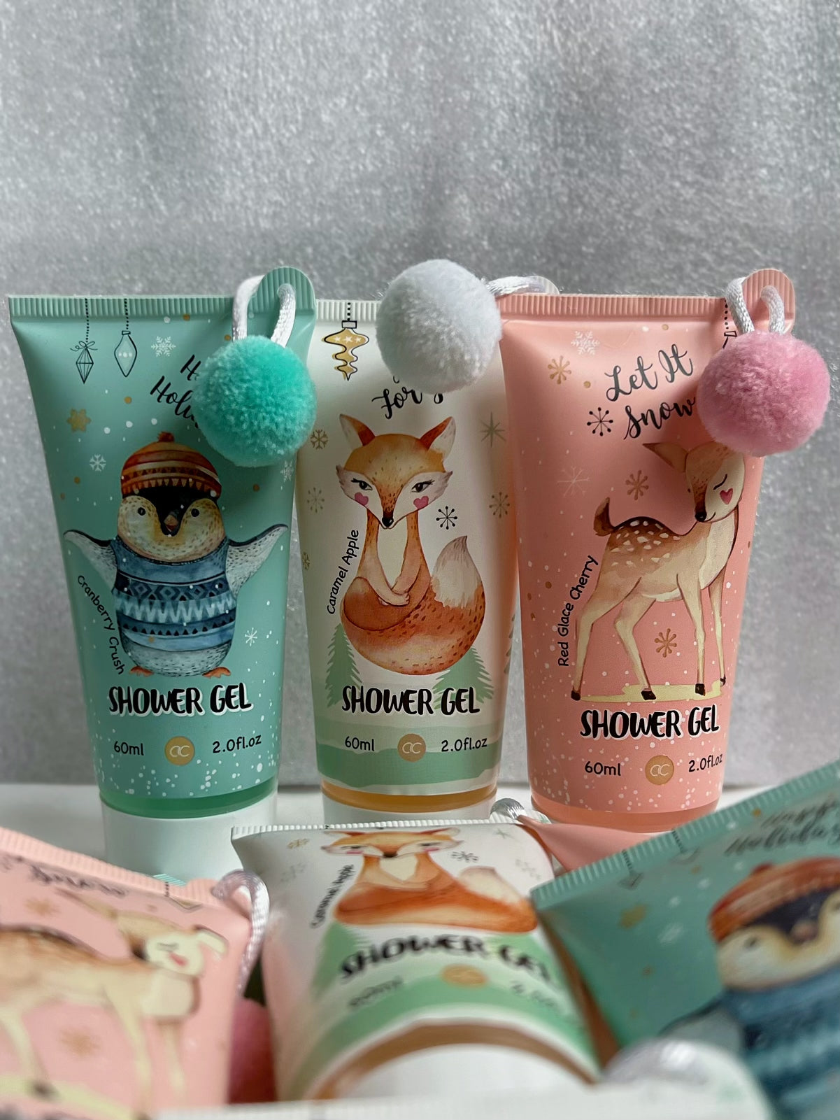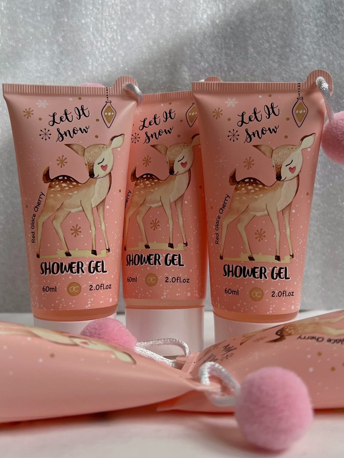Des petits pompons accompagnent ces gels douches d'une senteur incroyable et parfaitement dans le thème des fêtes de fin d'année.