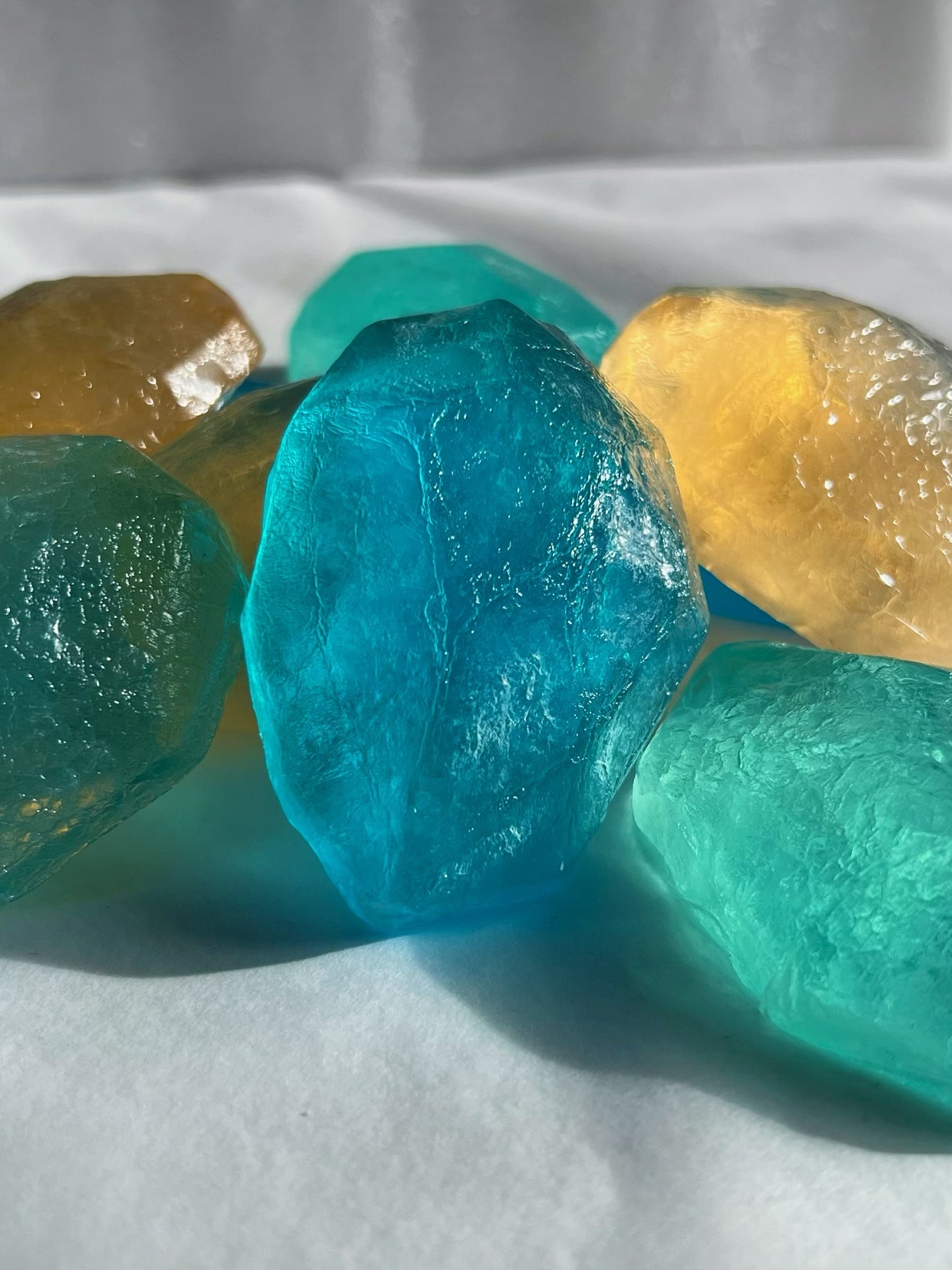 Ces savons de 50g ressemblent à des magnifiques cristaux, leur senteur eucalyptus et leur couleur si vive rajoutera une touche de douceur à votre salle de bain.