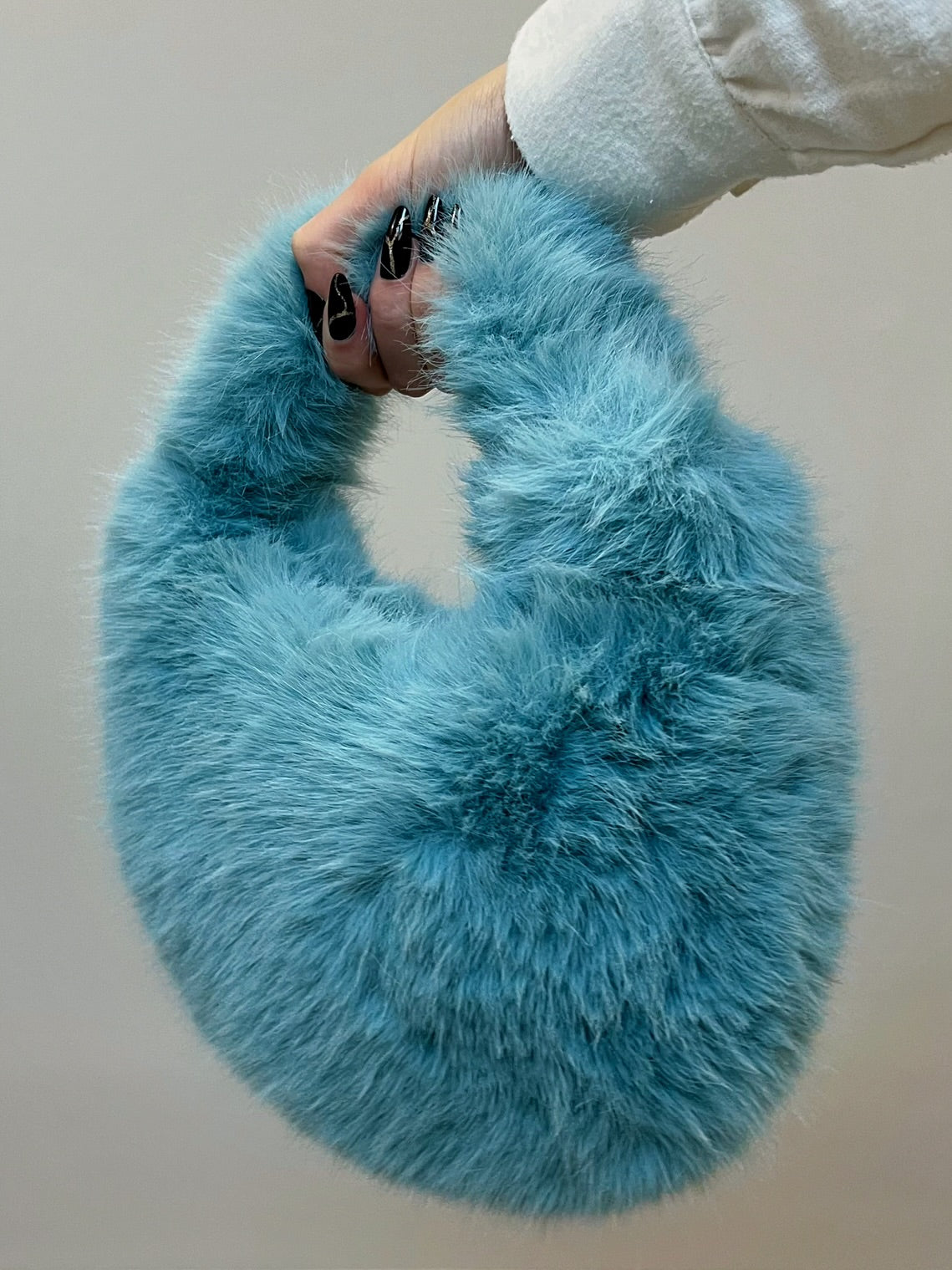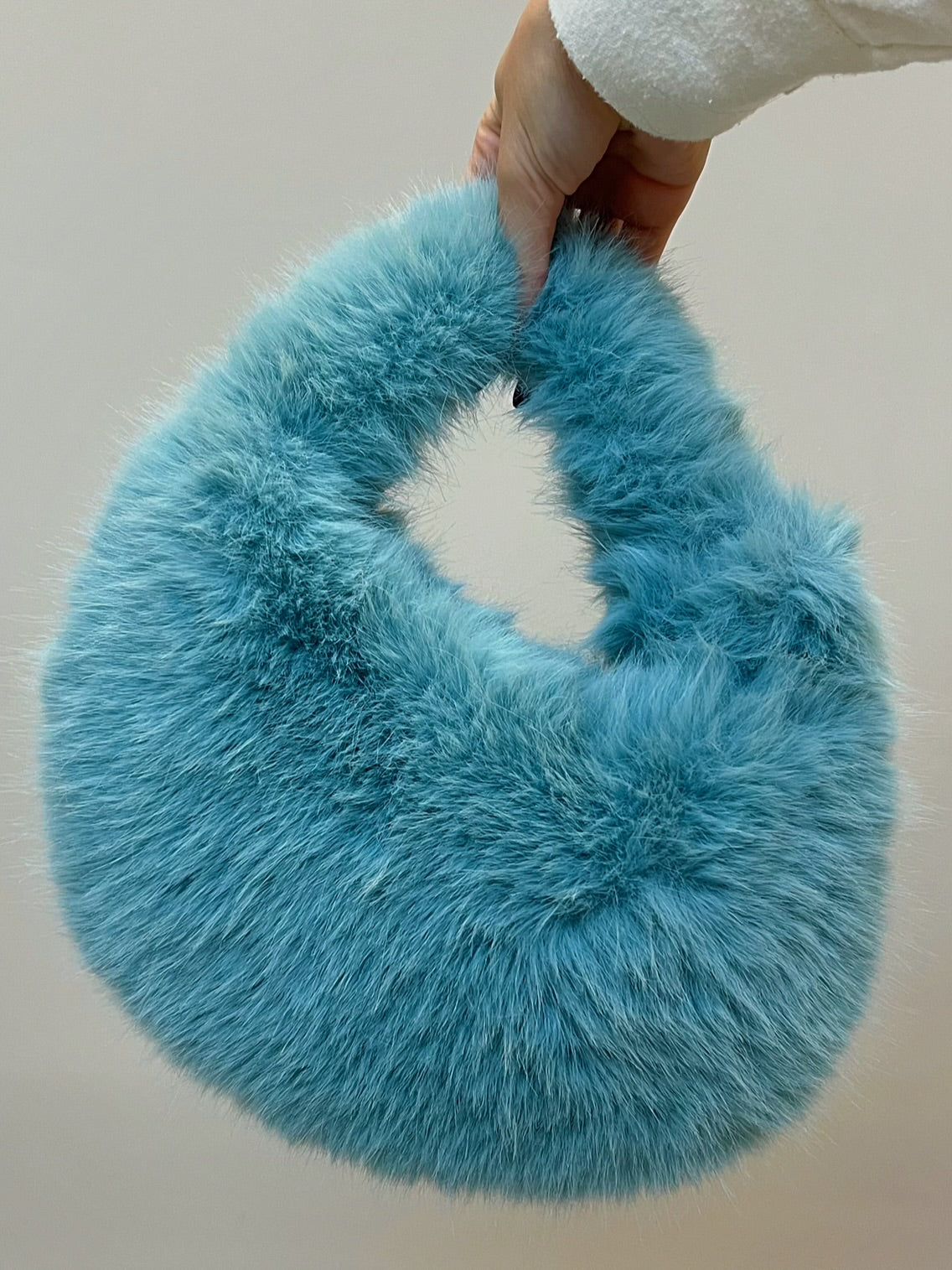 Sac à main en fourrure synthétique avec fermeture éclair.